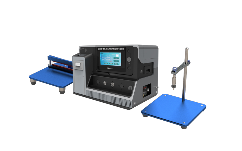 脹破試驗(yàn)是(shì)通過(guò)持續向包裝內部充入氣體,直至包裝袋被破壞,記錄包(bāo)裝袋被破壞(huài)時的壓(yā)力值即爆破壓力來評(píng)價耐內壓性能。